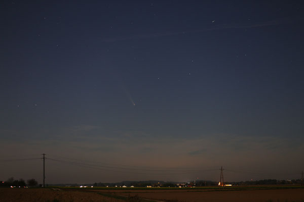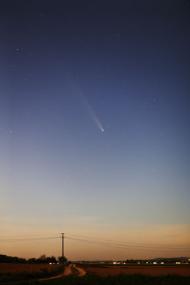 Am 13. Oktober 2024 kann ich C/2023 A3 Tsuchinshan-ATLAS kurz nach Dämmerungsanbruch am Horizont auffinden. Der Komet zeigt auf den Fotos einen beeindruckend langen Schweif, der auch mit freiem Auge - wenn auch schwach - zu sehen ist.